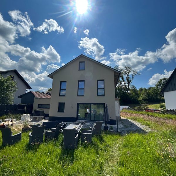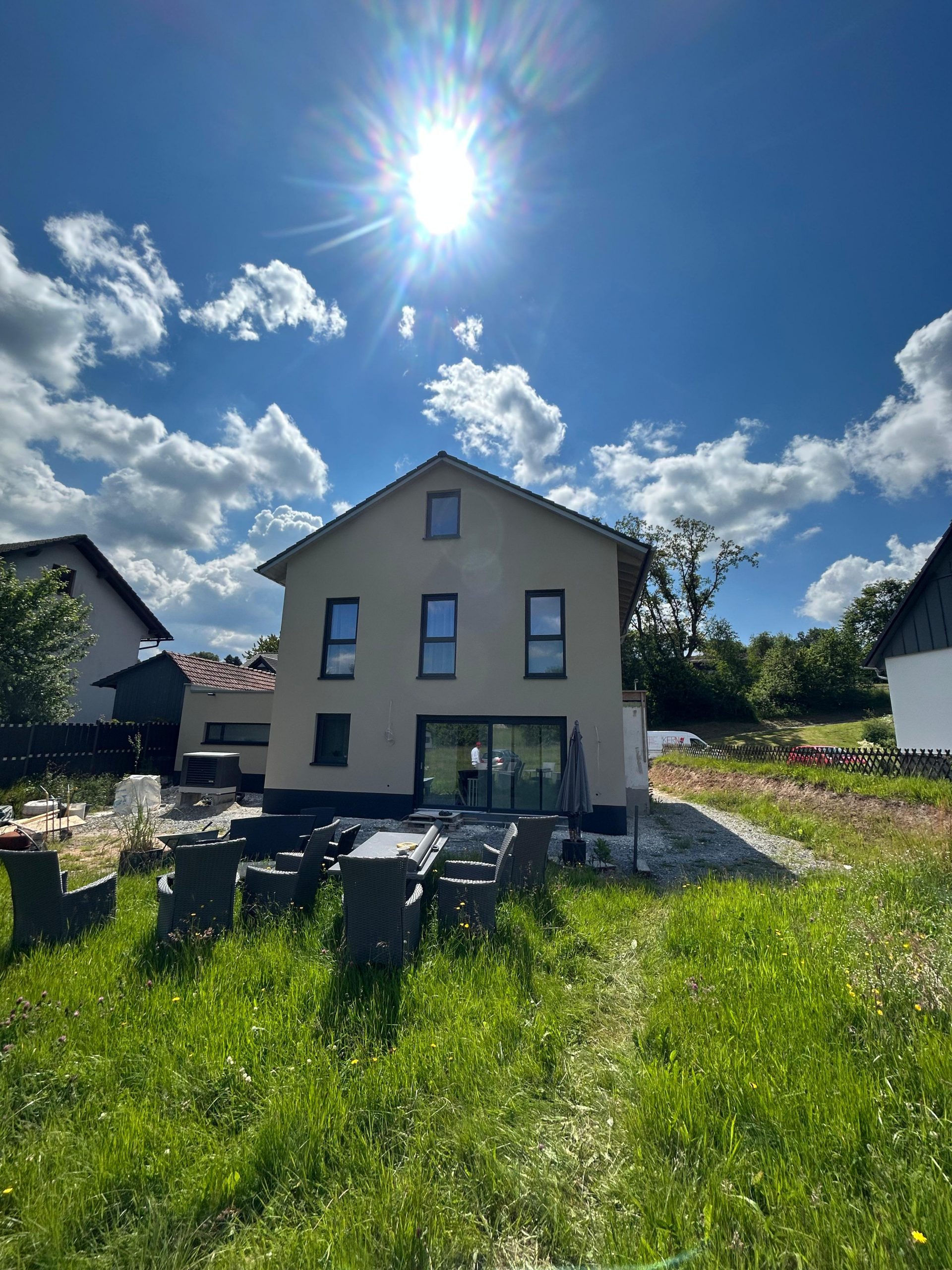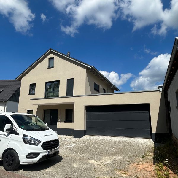 Abschließend erhielt die Fassade einen deckenden, witterungsbeständigen Anstrich. Die Farbauswahl wurde gemeinsam mit den Bauherren abgestimmt und harmoniert mit dem modernen Stil des Hauses. Durch die präzise Ausführung entsteht nicht nur ein optisch ansprechender Look, sondern auch ein solider Wetterschutz. Das Ergebnis: Eine hochwertige, langlebige Außenfassade, die den Neubau perfekt abrundet.