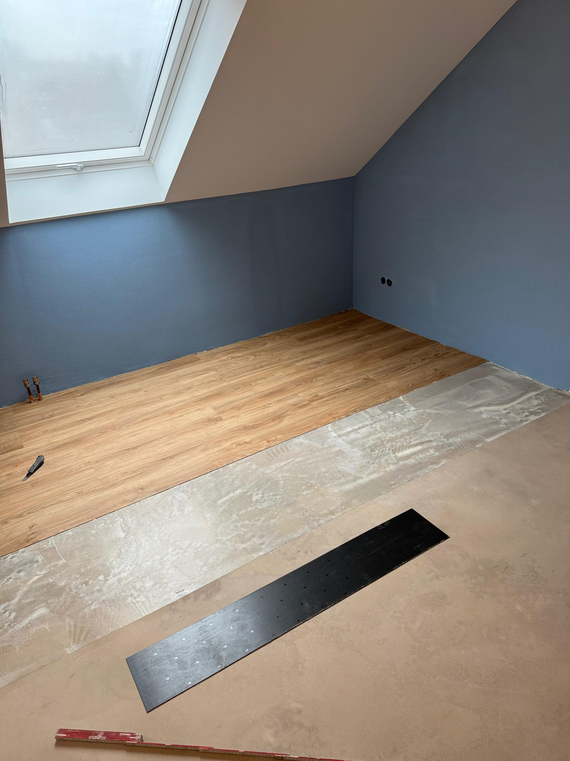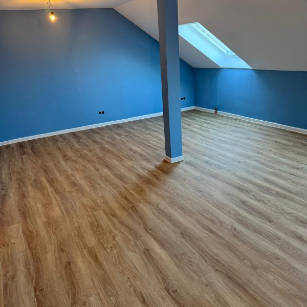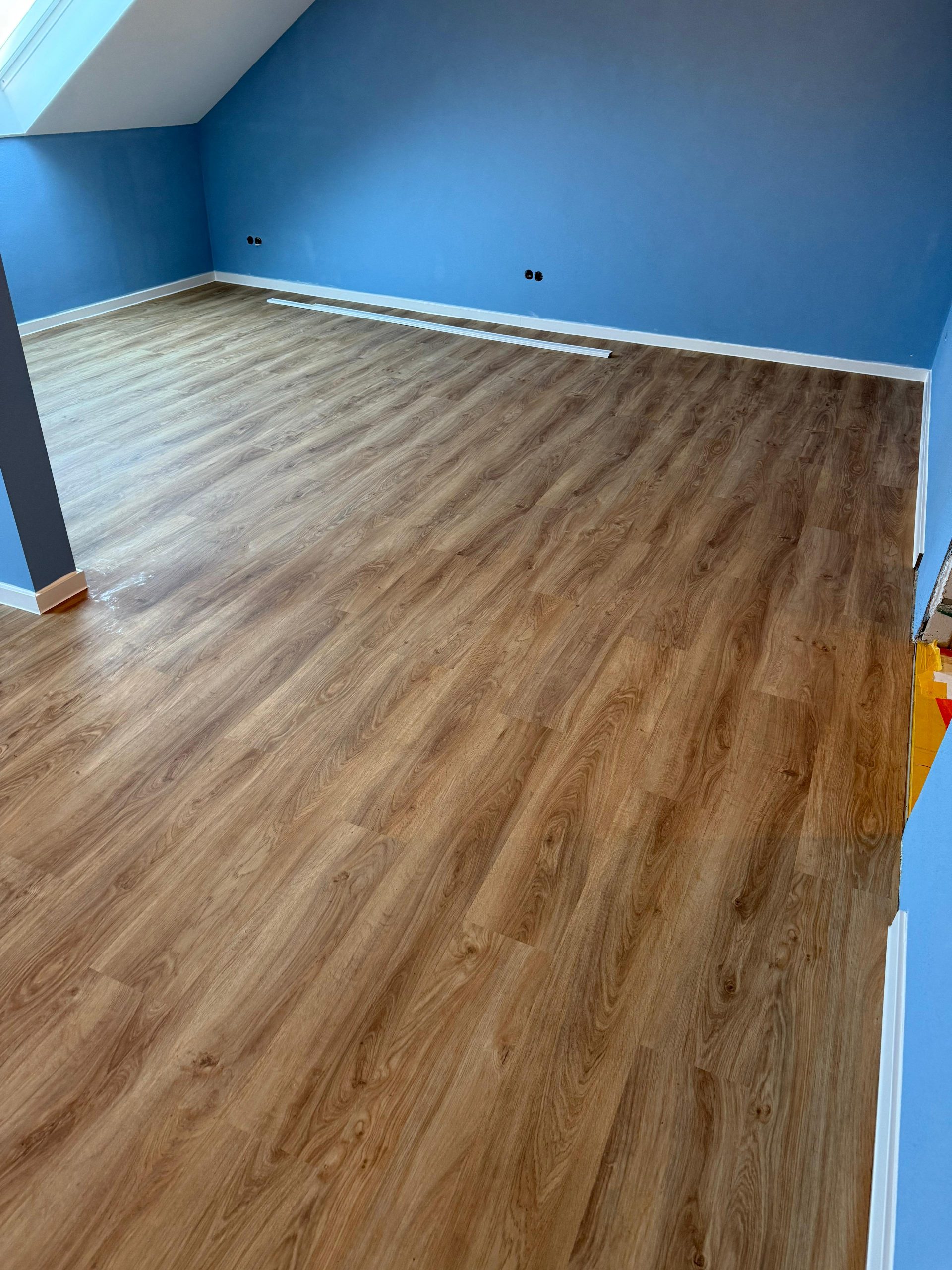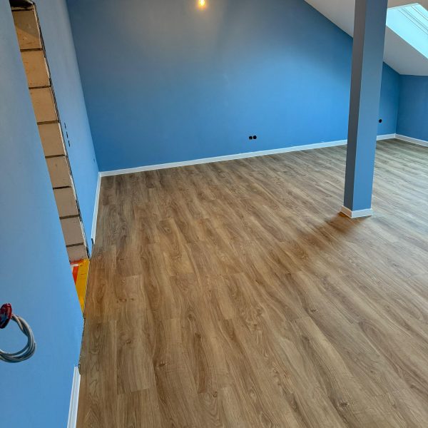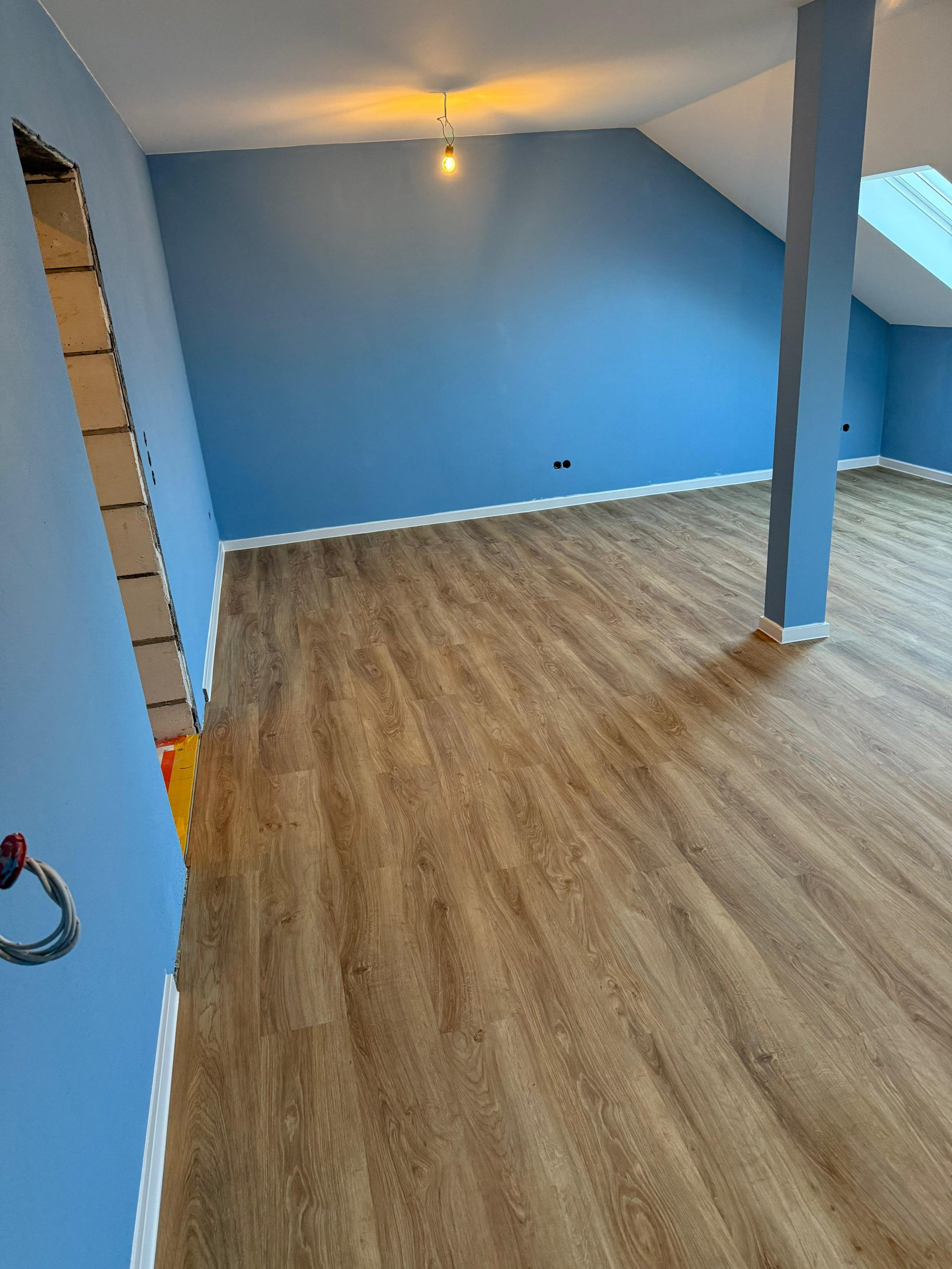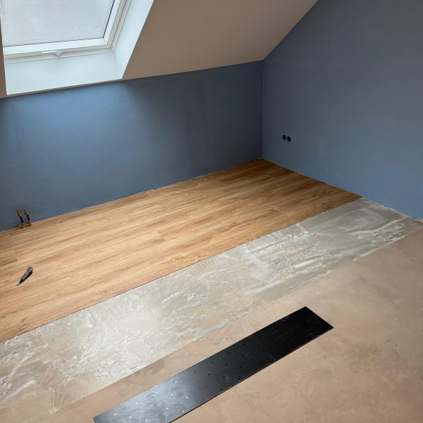 Zusätzlich wurde der Bodenbelag in allen Bereichen verlegt – passend zum Stil der Wandgestaltung. Durch das Zusammenspiel aller Gewerke aus einer Hand entstand ein harmonischer Gesamteindruck. Die präzise Umsetzung bis ins Detail sorgt für ein wohnliches Ambiente mit hoher Qualität. Ein Projekt, das handwerkliche Vielseitigkeit und Zuverlässigkeit unter Beweis stellt.